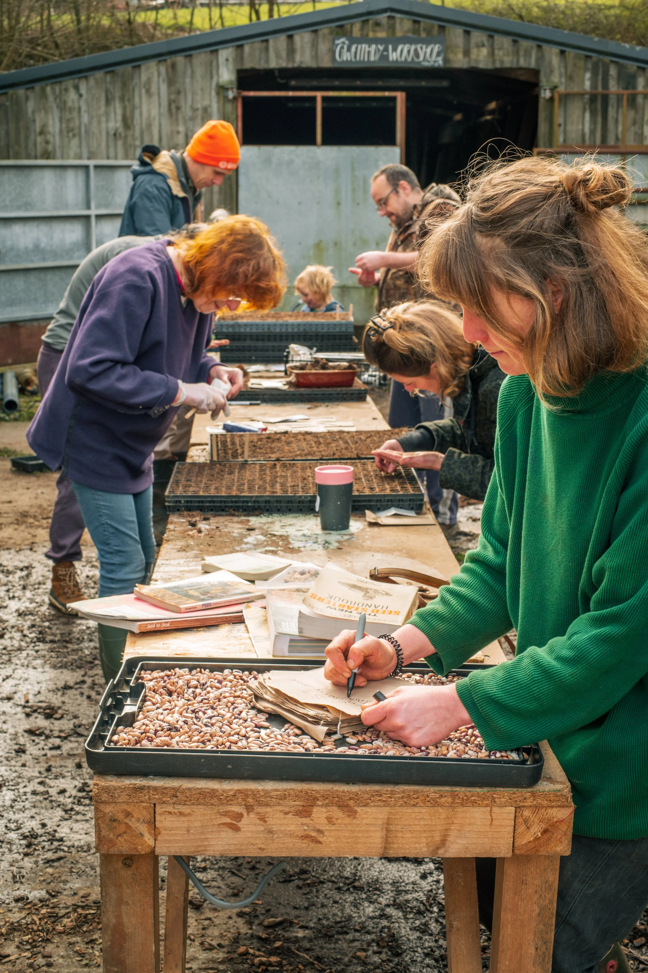 Head grower Sam coordinates a group of seed sowers, and shares knowledge about seed breeding and how we choose seeds here at Glasbren…