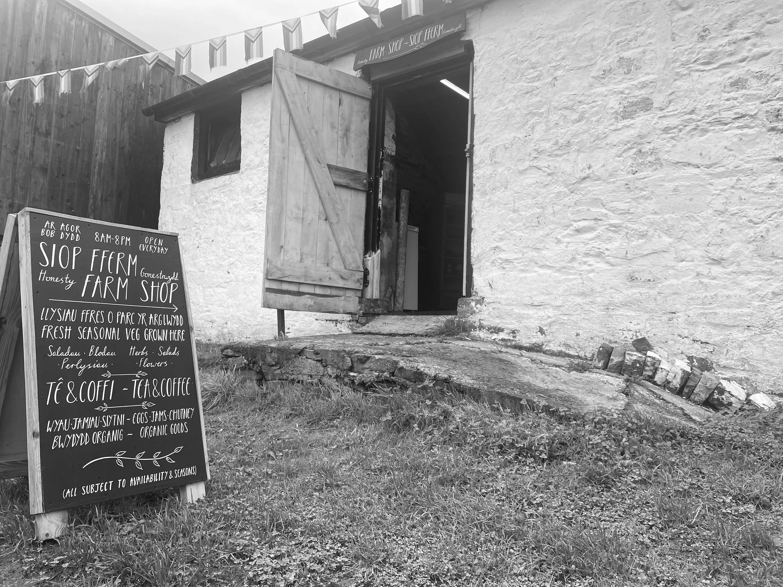 If you live locally, or are a regular walker through the farm on the Wales Coast Path, we’d encourage you to drop in to our honesty farm shop. Easy, convenient and self-service, it’s always stocked with the full range of vegetables that are seasonal to Wales and our local climate and growing season. You can also pick up a bottle of our community apple juice, local, regenerative eggs, honey and other organic products like mushrooms and fruits. The farm shop also has a tea and coffee station where, for a donation, you can pick up a warming brew on your way around the Wharley loop walk, or whilst picking up your weekly groceries. The farm shop is open from 8am until 8pm 7 days a week - even more convenient than Tesco!