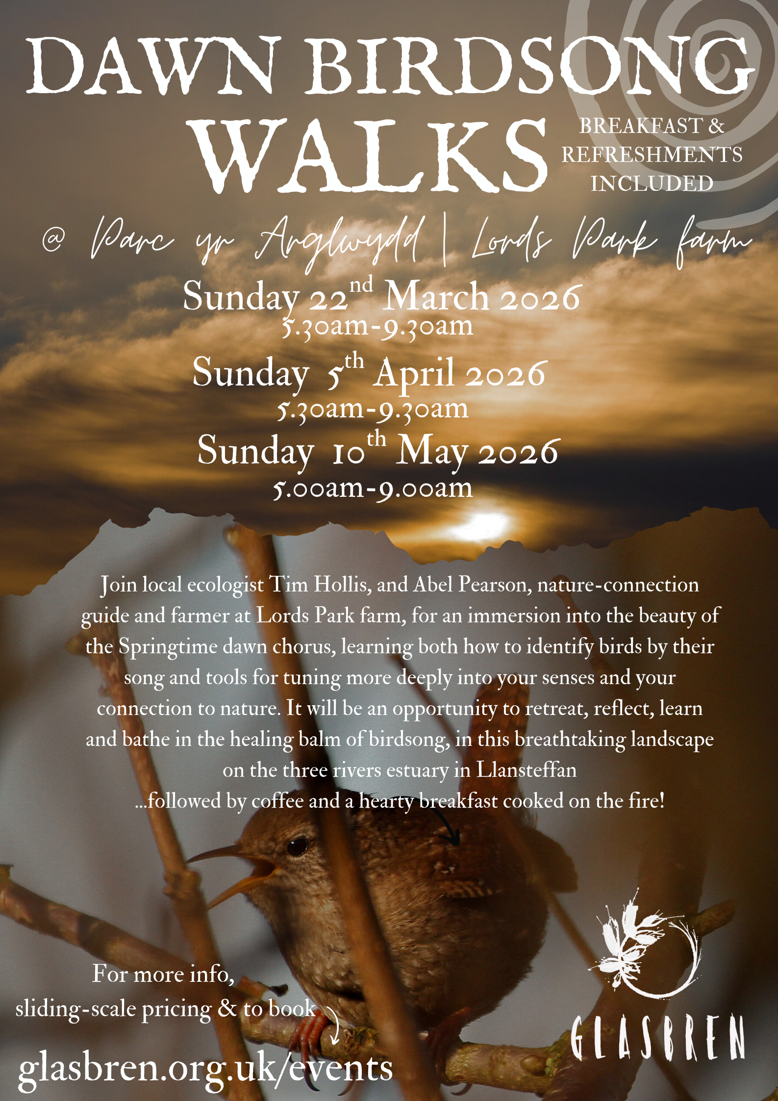 This Spring, just as the land is bursting with new life and at its most alive, we have planned an exciting Spring events series, carefully designed to offer different pathways into a deeper relationship with and understanding of the natural world. Each will guide you through the majestic coastal landscape of Lords Park farm from a different perspective and each will be an opportunity to retreat from your daily life, put away your phone, reflect and learn and bathe in the healing balm of nature. They can be booked in series, in a bundle or as individual events. Each will include refreshments and food cooked over the fire and each if offered on a sliding-scale pricing model to make these events as affordable and accessible as possible. Find out more and book a spot below.