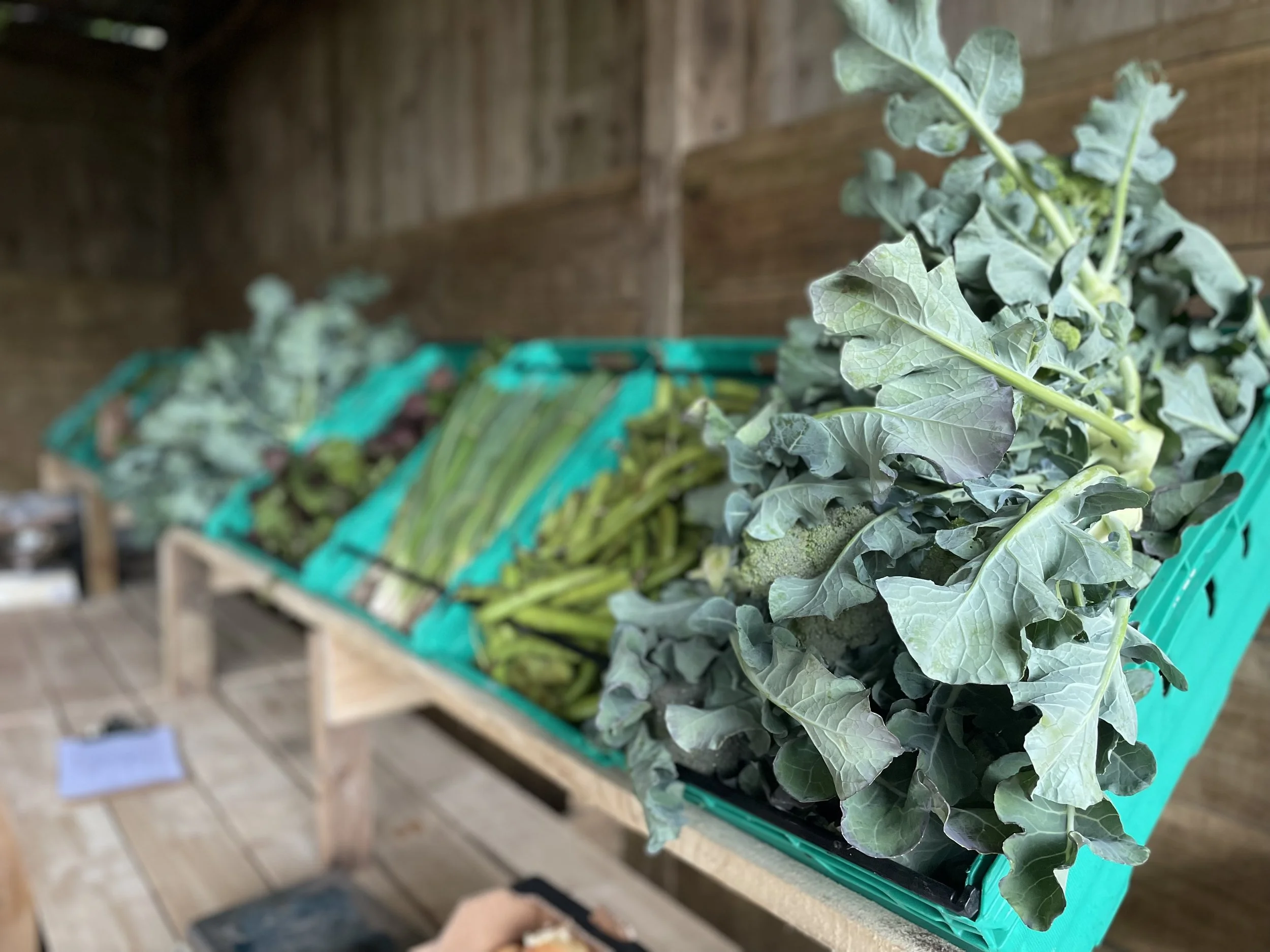 At our Harvest Celebration in early September, we opened the day with the grand opening of our new Honesty farm shop! In a historic cow barn on the edge of the public footpath as it passes through the farm, and just a few metres from our market garden where the vegetables are grown, the farm shop is now the perfect stop for passers by on their way around Wharley Point. It’s also a great option for those who can’t commit to a weekly veg box. As well as a range of vegetables from the fields here, we also have local honey, our Community Apple Juice, local, pasture-raised eggs and some added extras like mushrooms. We also have a tea and coffee station, where you can pick up a cuppa, by donation, as you pass by on your walk. We’re excited to develop the shop over the coming year, adding flower bouquets, local crafts and other local food stuffs as well as what we produce here on the far. Come and pay us a visit! The shop is open from 8am to 8pm 7 days a week.